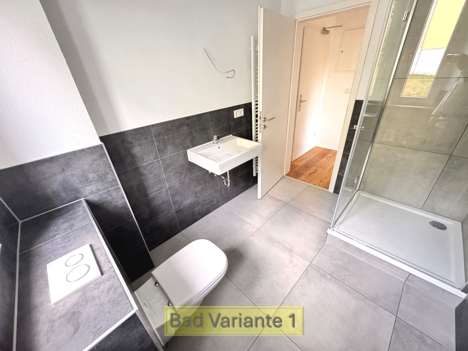 - Neue 60 cm x 60 cm Fliesen im Bad in Grau