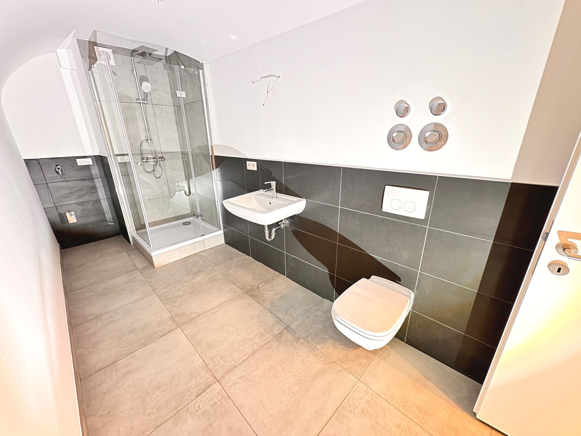 - Neue 60 cm x 60 cm Wandfliesen im Bad in Anthrazit