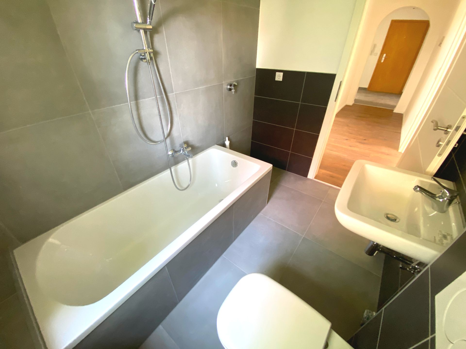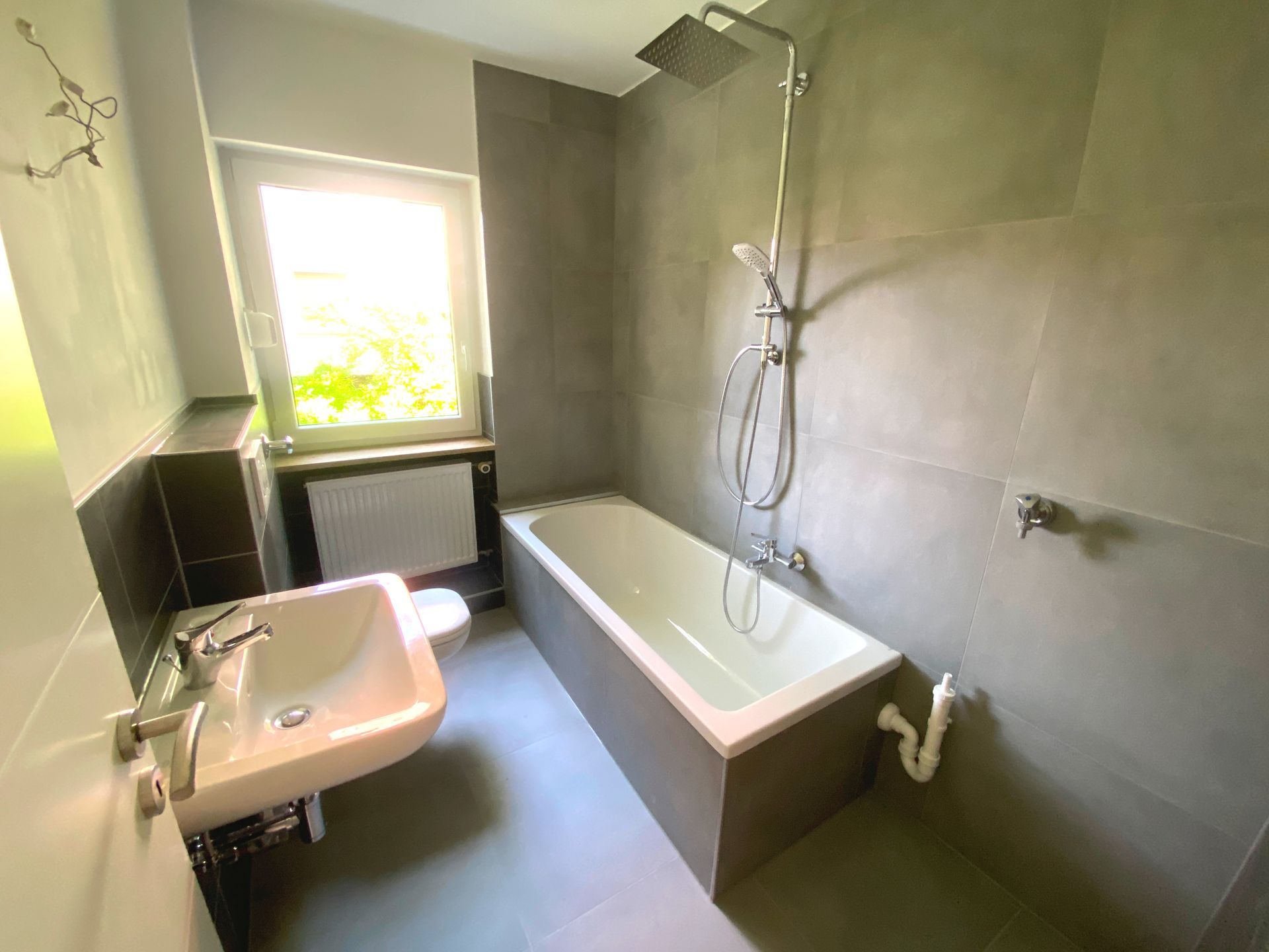 - Neue 60 cm x 30 cm Wandfliesen im Bad in Anthrazit