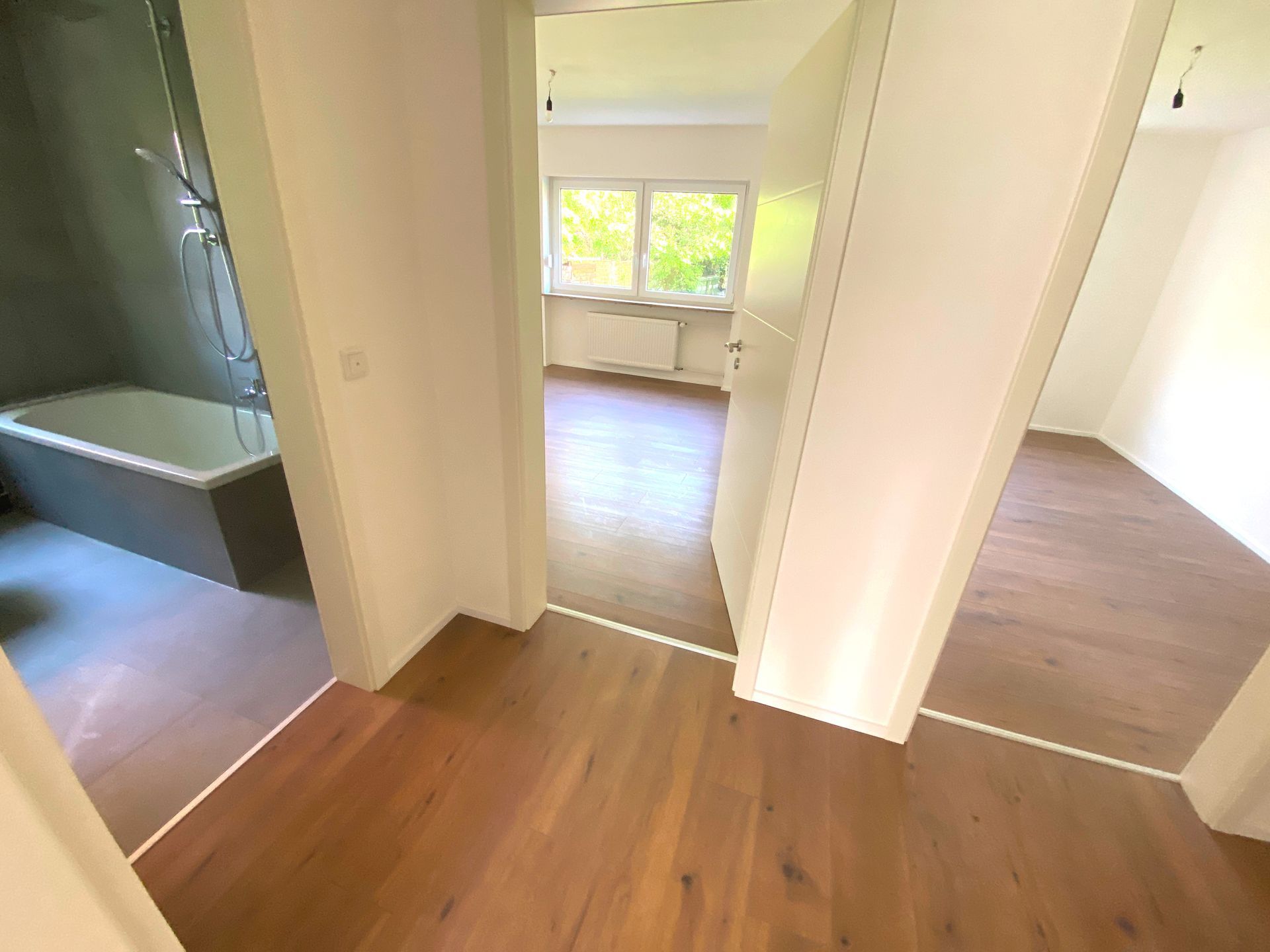 - Frisch verputzte (Q4) und weiß gestrichene Wände und Decken in der gesamten Wohnung